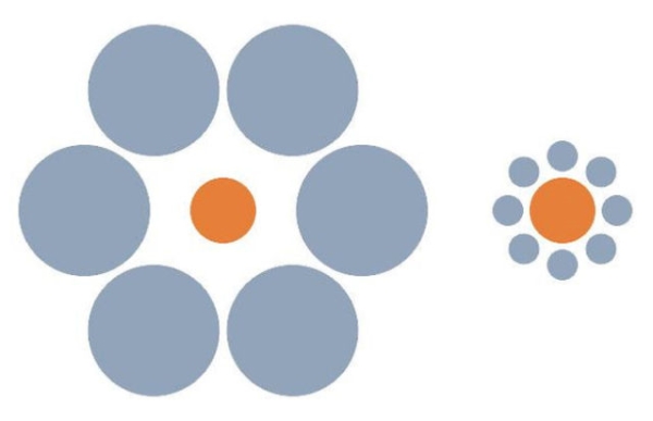 Het verschijnsel dat zon en maan dicht bij de horizon veel groter lijken dan hoog aan de hemel is een illusie, de zgn. maanillusie, die waarschijnlijk het gevolg is van de Ebbinghaus-illusie (zie afbeelding)
