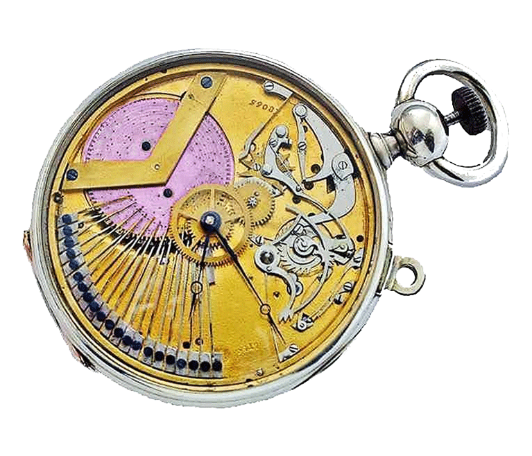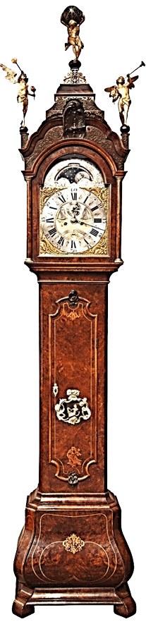 De ‘zelfopwindende’ klok (in conventionele houten kast uit 1908) is een product van de Amerikaanse Self Winding Clock Company (1886-1970). Elk uur werd de veer automatisch opgewonden door een elektromotor die gevoed werd door een batterij met een levens-duur van een jaar. Het bedrijf verkocht ‘exacte tijd’ door haar klokken elk uur telegrafisch te kalibreren via een moederklok die was verbonden met de US Naval Observatory.